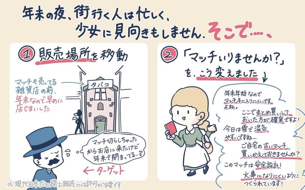 ターゲッティングとニーズ喚起でハッピーエンドに マッチ売りの少女 がマッチングをはじめるイラストがビジネス視点で参考に 年9月17日 エキサイトニュース